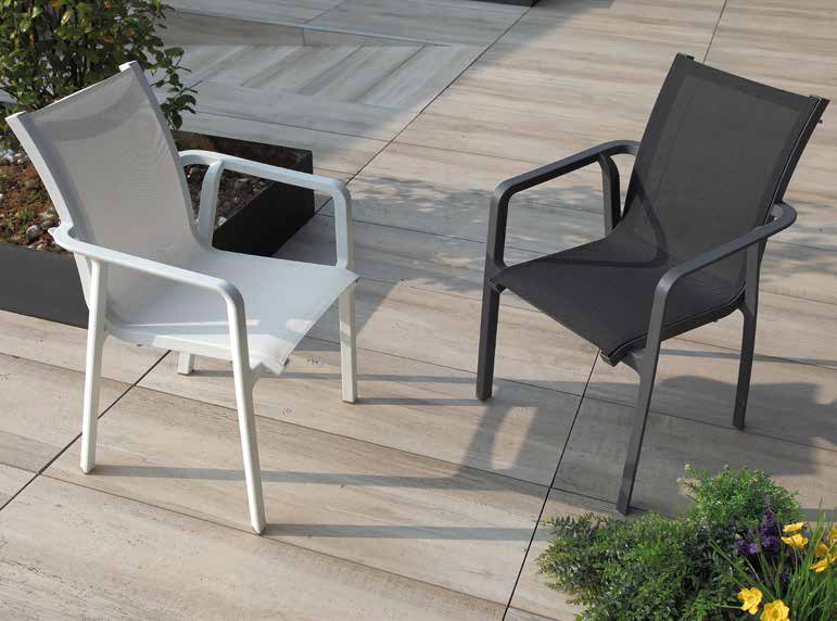 Fauteuil empilable aluminium et revêtement en osier Chocolat (avec coussins écrus)...