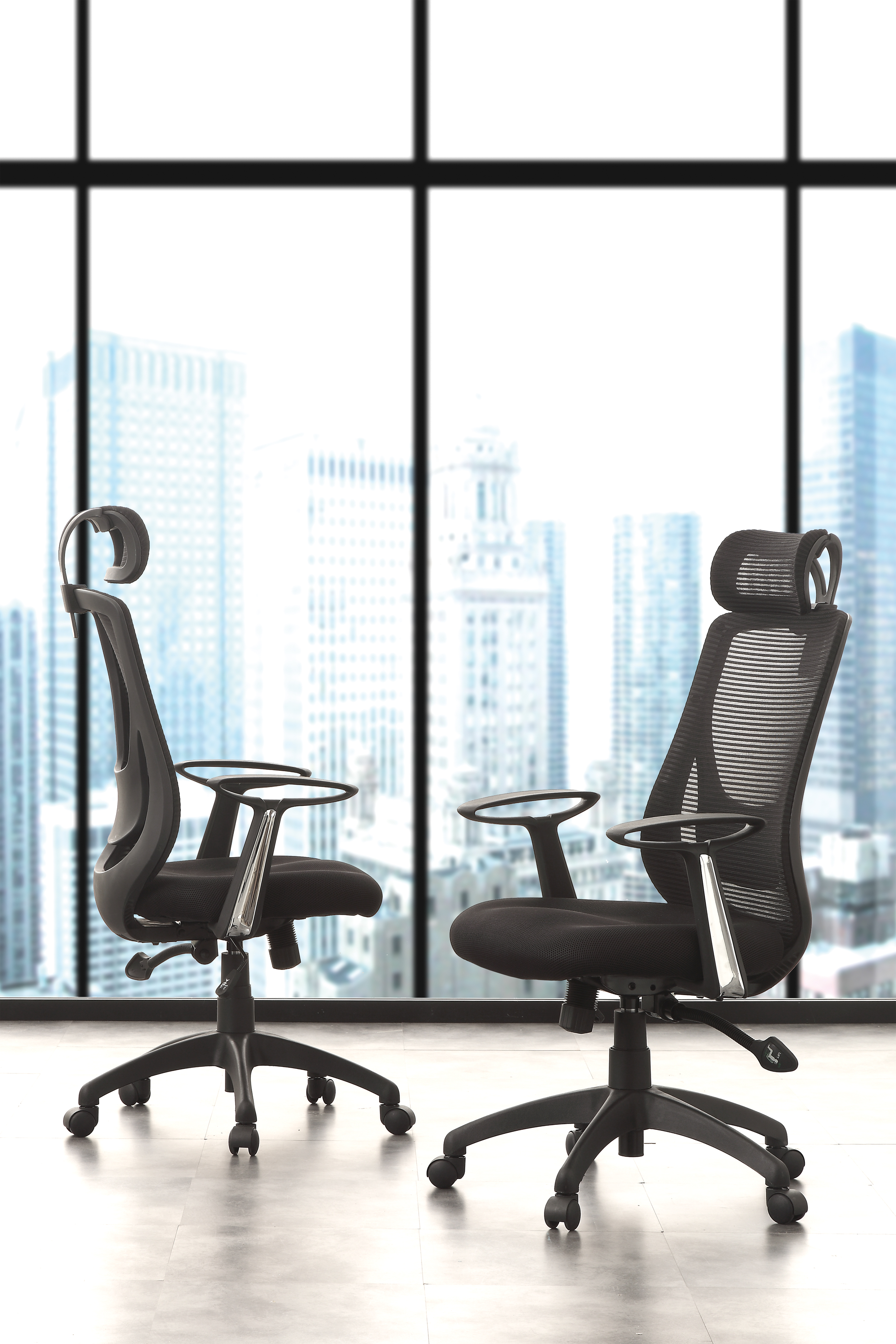 Chaise pivotante avec élévateur à gazMécanisme synchroneStructureDossier : microperforéAssises : puma noir